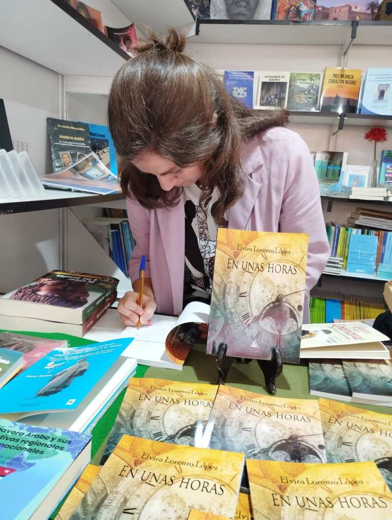 Confieso que estaba muy nerviosa y no sabía cómo me iba a ir, siendo además la primera vez que tenía un pequeño hueco en la #flm. Antes de empezar, quería asomarme por la caseta donde firmaba a esa hora Pilar Adón: quería conocerla y que me firmara algunos libros suyos. Fueron breves momentos pero intensos, y quise regalarle lo que podía, uno de mis libros. ¡Y me pidió que se lo firmara!